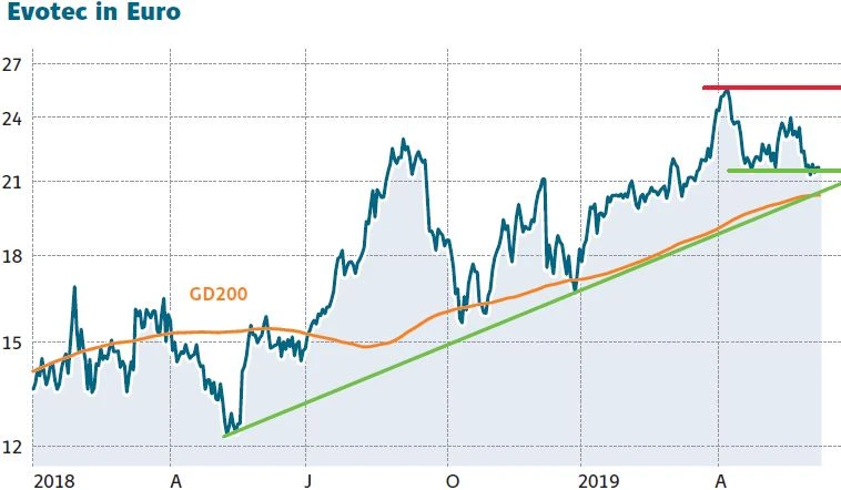 Die Aktie von Evotec hat zuletzt eine Korrektur vollzogen. Durch Leerverkäufer wurde die Korrekturbewegung verstärkt. DER AKTIONÄR sieht das aktuelle Niveau für noch nicht investierte Anleger als gutes Einstiegsniveau. Anleger, die bereits seit der Kaufempfehlung des AKTIONÄR im Oktober vergangenen Jahres bei Evotec an Bord sind, lassen ihre Gewinne von derzeit 27 Prozent weiter laufen. Mittelfristig rechnet DER AKTIONÄR weiter mit Kursen im Bereich von 30 Euro.