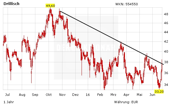 Bereits gestern hatte DER AKTIONÄR auf die charttechnische Situation bei Drillisch hingewiesen und mutigen Investoren zum Kauf geraten. Diese bleiben weiter dabei und Neueinsteiger greifen beim Bruch des Abwärtstrends zu.