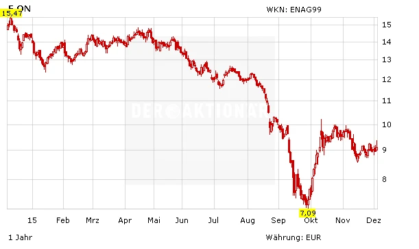 Das Analysehaus Jefferies hat E.on mit einer Kaufempfehlung und einem Kursziel von 10,50 Euro in die Bewertung aufgenommen. Die unterdurchschnittliche Entwicklung der Aktie in diesem Jahr sei übertrieben, schrieb Analyst Ahmed Farman. Die steigende Zuversicht auf stabile Gewinnbeiträge nach der Konzernaufspaltung und die Aussichten auf attraktive Dividendenzahlungen dürften das Papier nach Einschätzung des Experten beflügeln.