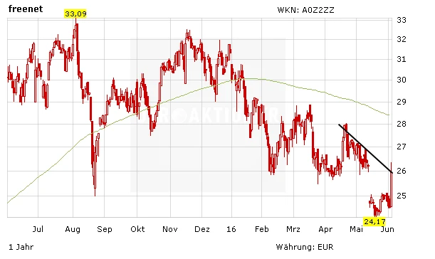 Ausgelöst wurde die Rally durch eine Hochstufung von Hold auf Buy von Warburg Research. Ausschlaggebend für die Hochstufung ist die neue Wachstumsstrategie von Freenet. Das Analysehaus sieht die neuesten Übernahmen des Mobilfunkanbieters als möglichen „game changer“. Im Frühjahr hatte Freenet zum Beispiel die Übernahme des TV-Dienstleisters Media Broadcast angekündigt. Mit diesen strategischen Zukäufen weiten sie ihr Kerngeschäft Telekommunikation auf die profitableren Bereiche TV- und Videodienste aus. Das sollte sich auch in den Gewinnen bemerkbar machen.