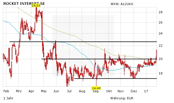 Analyst Benjamin Kohnke von der Deutschen Bank hat am Dienstag seine Kaufempfehlung für die Rocket-Aktie mit einem Kursziel von 30 Euro bestätigt. Das zu diesem Zeitpunkt rund 50-prozentige Kurpotenzial begründet er mit dem für dieses Jahr geplanten Börsengang des Essenslieferdienstes Delivery Hero, an dem die Start-up-Schmiede mit rund 38 Prozent beteiligt ist.