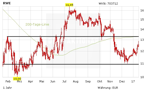 Zudem hat Goldman Sachs das Kursziel für die Titel von RWE von 14 auf 15 Euro angehoben und die Einstufung auf „Neutral“ belassen. Analyst Alberto Gandolfi erklärte, die europäischen Versorger dürften im laufenden Jahr wieder auf den Wachstumspfad zurückkehren. Erstmals nach sechs Jahren sollte auch das operative Ergebnis im Sektor wieder steigen. Darüber hinaus werde das neue Jahr von größeren Zukäufen und Fusionen geprägt sein, glaubt der Experte.