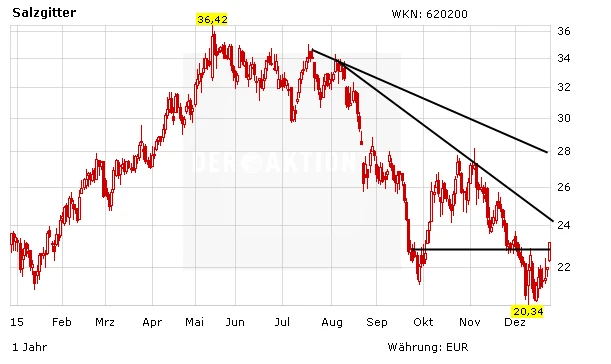 Kaum anders stellt sich die Lage bei Salzgitter dar. Im Dezember hat die Aktie sogar ein neues Mehrjahrestief erreicht und war fast bis auf die 20-Euro-Marke abgerutscht.