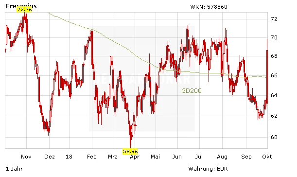 Das US-Analysehaus Bernstein Research sieht sogar mit einem Kursziel von 83 Euro noch etwas mehr Potenzial. Analystin Lisa Bedell Clive hat die Einstufung für Fresenius auf „Outperform" mit einem Kursziel von 83 Euro belassen. Sie lobte, dass sich die Krankenhaustochter Helios bereits auf das neue Pflegepersonal-Stärkungsgesetz in Deutschland eingestellt habe. Wichtigste Neuerung sei die Loslösung der Pflegekosten vom Vergütungssystem mit Fallpauschalen (DRG), was für die Effizienz von Helios bei den Personalkosten eher von Nachteil sei. Andere Punkte des Programms seien aber vorteilhaft.