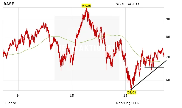 Auch DER AKTIONÄR bleibt für die Aktie von BASF zuversichtlich gestimmt und rät zum kauf. Zudem lockt die stattliche Dividendenrendite von mehr als vier Prozent. Der Stopp sollte bei 58,00 Euro belassen werden.