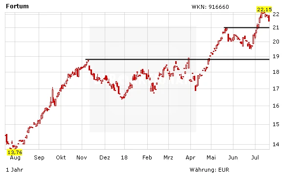 Seit der Empfehlung des AKTIONÄR im Juli 2017 hat die Fortum-Aktie bereits 57 Prozent zugelegt. Es bleibt zwar nach wie vor unklar, wie es mit der Uniper-Beteiligung weitergeht. Grundsätzlich ist der Konzern aber gut aufgestellt und dürfte von anziehenden Strompreisen und der anhaltenden Erholung in der europäischen Energiebranche weiter profitieren. Anleger geben kein Stück aus der Hand und lassen die Gewinne laufen.