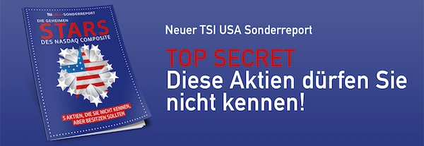 Entscheiden Sie sich für den Sonderreport „Die geheimen Stars des Nasdaq Composite“ und lassen sich von dem erprobten und erfolgreichen System überzeugen. Die Kosten des Reports können im Fall eines zeitgleichen oder nachträglichen Aboabschlusses von TSI-USA vollständig angerechnet werden.