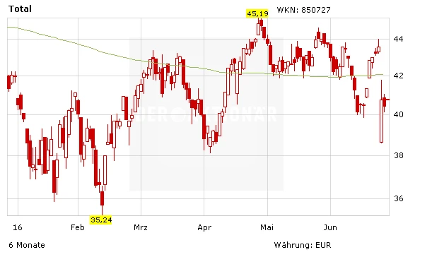 So hat die US-Investmentbank zwar das Kursziel für die Total-Anteile von 49,00 auf 46,70 Euro gesenkt, aber die Einstufung auf "Buy" belassen. Er habe seine Schätzungen wegen veränderter Ölpreisannahmen für 2016 und 2017 angepasst. Dass Großbritannien die EU verlasse, habe zugleich nur geringen fundamentalen Einfluss auf den Sektor. Neben Shell und Eni zählt er Total zu seinen Favoriten. Die Franzosen zeigten weiterhin eine starke operative Entwicklung und profitierten kurzfristig von steigenden Volumina und einer soliden Bilanz.
