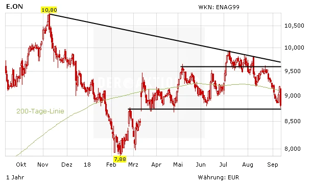 Pikant: SSE legt derzeit Teile seines Geschäfts mit Npower, der britischen Innogy-Tochter, zusammen. Es verwundert deshalb nicht, dass E.on von der allgemein negativen Stimmung im Versorgersektor nach der Gewinnwarnung besonders stark betroffen ist. Hintergrund: Innogy soll künftig 34,4 Prozent am neuen, eigenständigen Fusionsunternehmen von SSE und Npower halten. Nach dem Mega-Übernahme von Innogy geht dieser im kommenden Jahr an E.on über.