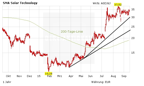 Die Nummer zwei im HDAX SMA Solar (123 Prozent Plus seit Jahresanfang) schwächelt am heutigen Mittwoch etwas. Nach einer negativen Analystenstimme büßt der TecDAX-Wert mehr als zwei Prozent.