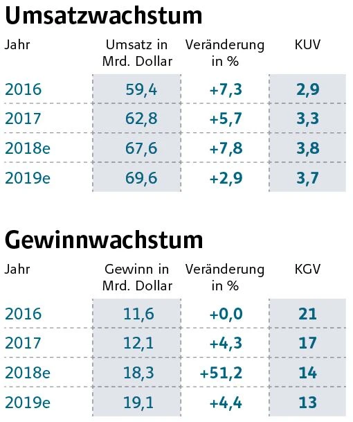 Das rasante Wachstum der Data Center Group kann das stagnierende Geschäft mit Desktop-Prozessoren leicht ausgleichen. Analysten rechnen damit, dass sich dieser Trend im Laufe des Jahres fortsetzen und sich Intels bilanzielle Situation weiter verbessern dürfte. Für das Gesamtjahr 2018 erwarten die Wall-Street- Experten einen Umsatzzuwachs von 7,8 Prozent auf 67,6 Milliarden Dollar. Aufgrund der teureren Data-Center-Produkte für Unternehmenskunden rechnen einige Analysten zudem mit einem positiven Effekt für die operative Marge. Als Marktführer im Bereich Serverchips dürfte die Entwicklung im Data-Center-Markt daher nicht nur die Bilanz von Intel aufbessern, sondern auch künftig als ordentlicher Kurstreiber dienen.