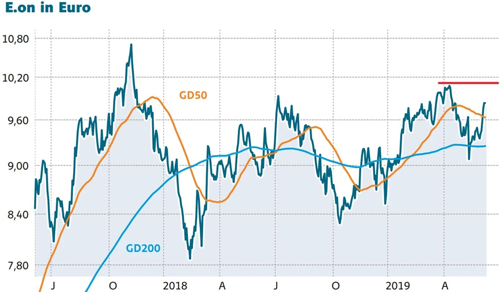 Am 22. März hatte E.on bei 10,144 Euro das vorläufige Jahreshoch markiert. Sollte diese Hürde gemeistert werden, dürften weitere trading-orientierte Anleger auf den Zug aufspringen. Das Kursziel anschließend lautet auf 10,68 Euro.