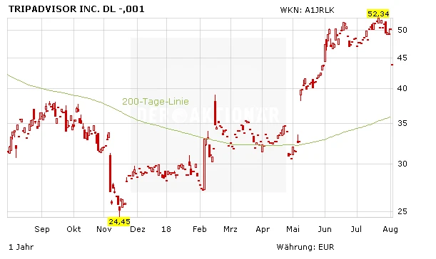 Der rasante Kursanstieg ließ keine Fehler zu. Doch TripAdvisor konnte die Erwartungen der Analysten nur bedingt erfüllen. Die Gewinne je Aktie von 0,41 Dollar übertrafen zwar die Konsensschätzung von 0,39 Dollar je Aktie. Der Umsatz blieb mit 433 Millionen Dollar jedoch knapp hinter den Erwartungen von 435 Millionen Dollar zurück. Sicherlich hat TripAdvisor die Erwartungen der Wall Street nur knapp verpasst, doch insbesondere beim Umsatzwachstum hätte der Reise-Konzern liefern müssen, um die Turnaround-Story weiter zu befeuern.