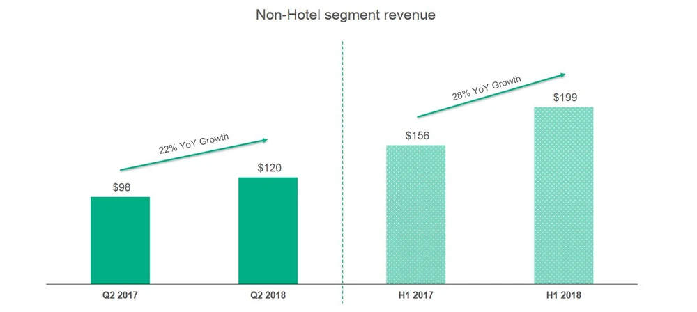 Der Abverkauf von zehn Prozent wird umso nachvollziehbarer, wenn die verpasste Umsatzerwartung auch noch im schwächeren Wachstum des Non-Hotel Segment begründet liegt. Denn die Sparte um Attraktionen, Ferienwohnungen und Restaurants soll gerade das stagnierende Kerngeschäft ausgleichen. Im zweiten Quartal wuchs Non-Hotel jedoch nur noch 22 Prozent. Eine deutliche Abschwächung gegenüber dem ersten Quartal, in welchem der Bereich noch 36 Prozent zulegte. Währungseffekte und die Konkurrenz durch Booking.com bei der Vermietung von Ferienwohnungen zehrten zudem an der Umsatzentwicklung.