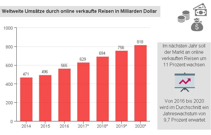 Der Reisemarkt wächst rasant. Laut Experten sollen die weltweiten Erlöse von 565 Milliarden Dollar im Jahr 2016 auf 818 Milliarden Dollar bis 2020 steigen. Insbesondere die Art, wie heute ein Hotel gebucht wird, spielt Trivago mächtig in die Karten. Mittlerweile machen die Onlinebuchungen 22 Prozent aller Buchungen aus – nächstes Jahr sollen es schon 30 Prozent sein.
