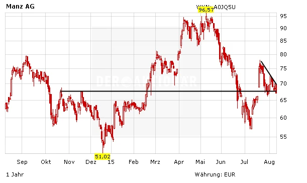 Die Manz AG hat am heutigen Dienstag ihren Finanzbericht zum ersten Halbjahr 2015 veröffentlicht. Der Umsatz ging auf Jahresbasis um 25 Prozent auf 121,9 Millionen Euro zurück, wie das Unternehmen berichtet. Der Aktienkurs geriet direkt nach Börsenstart stark unter Druck.