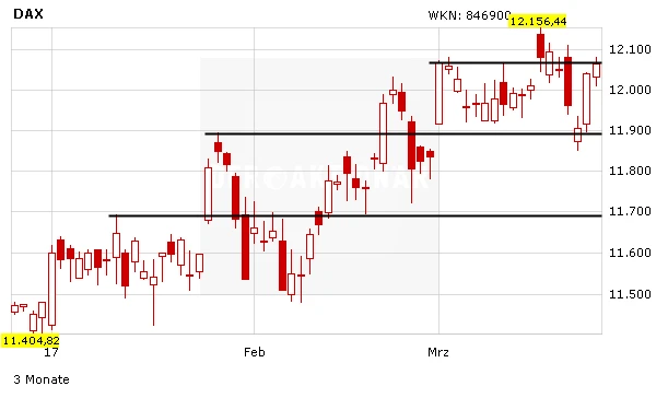 Eine Befreiung wäre ein Anstieg über das Hoch bei 12.067 (auf Schlusskursbasis) beziehungsweise dem Jahreshoch. Dazu müssen aber der Euro und die wall Street mitspielen.