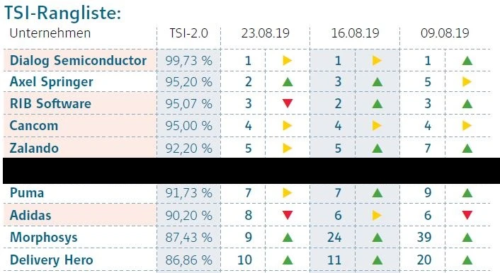 Die TSI Liste wird jeden Freitag aktualisiert. Auf den vorderen Plätzen gab es wenig Veränderungen. Ein Trendwert konnte sich hingegen nach oben arbeiten und wandert neu in das TSI Portfolio. Damit ist das Depot wieder voll investiert.
