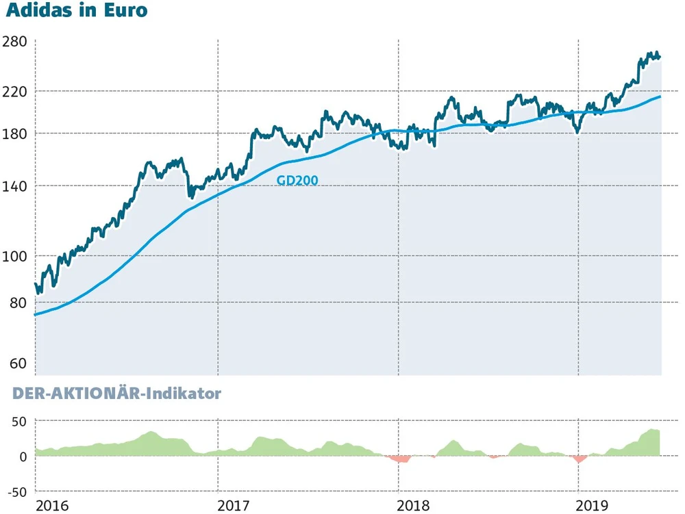 Der andere Kandidat ist Adidas. Der Sportartikelhersteller besitzt einen TSI-Wert von 94,10 Prozent. Allein seit Jahresbeginn konnte Adidas eine Performance von über 42 Prozent erzielen und zählt damit zu einen der besten Aktien am deutschen Markt.