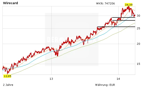 16 Prozent hat die Aktie von Wirecard in knapp vier Wochen verloren. Dabei ist im Leitindex DAX gar nicht viel passiert. Viele Tech-Werte standen in den letzten Tagen eher deutlich unter Druck. Ein Blick Richtung Amerika zeigt: Hier hat die Korrektur bei vielen Tech-Aktien schon früher eingesetzt. Unternehmen wie zum Beispiel Facebook und Amazon haben Verluste von fast 20 Prozent einstecken müssen. Vor wenigen Tagen hat die britische Investmentbank Barclays die Einstufung für Wirecard auf "Equal Weight" mit einem Kursziel von 28 Euro belassen. Elektronische Bezahlsysteme würden im Einzelhandel angesichts der beschleunigten Digitalisierung immer stärker integriert, schrieb Analyst Gerardus Vos. Der Experte lobte die Strategie von Wirecard, jedoch sei die TecDax-Aktie inzwischen etwas heiß gelaufen. Das dürfte sich nach den Verlusten in den letzten Tagen doch etwas relativiert haben.
