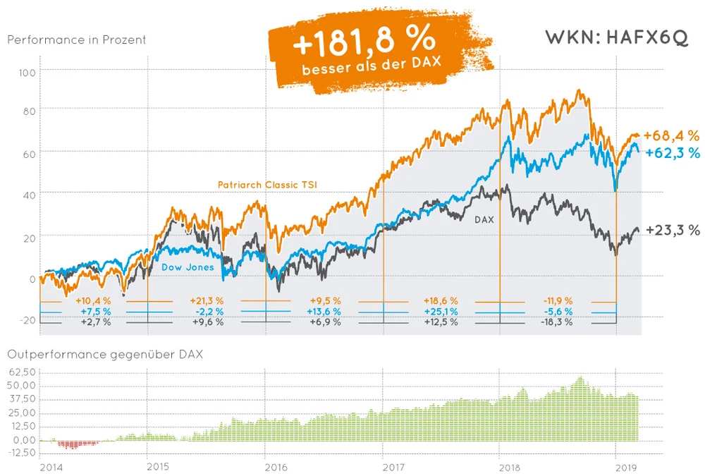 Anfang dieses Jahres feierte der TSI-Fonds sein fünfjähriges Bestehen. Rückblickend war diese eine äußerst erfolgreiche Zeit. Anleger die seit Beginn dabei sind, können auf Rendite von über 69 Prozent blicken. Der DAX hat im selben Zeitraum nur rund 24 Prozent zulegen können. Die klare Strategie des TSI-Fonds zeigt damit seine klare Überlegenheit.