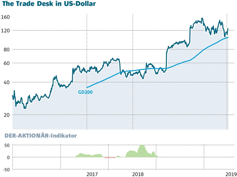 Auch wenn das Unternehmen in Deutschland noch kaum bekannt ist, hat es sich zu einem der führenden Konzerne im Bereich des Online-Marketing entwickelt. The Trade Desk ist eine Cloud-basierte Technologieplattform, die Unternehmen dabei unterstützt, die Verhaltensweisen ihrer Kunden für Anzeigen auf mehreren digitalen Plattformen zu optimieren. Dieses Gebiet der individualisierten Werbung gewinnt immer mehr an Bedeutung. Dies spiegelt sich auch in den Zahlen des Konzerns nieder. Der Umsatz stieg in den ersten drei Quartalen um 54 Prozent auf 316,8 Millionen Dollar und der Nettogewinn von USD 72,7 Mio. verdeutlicht dabei die Profitabilität, was einer bereinigten Gewinnmarge von rund 23 Prozent entspricht.