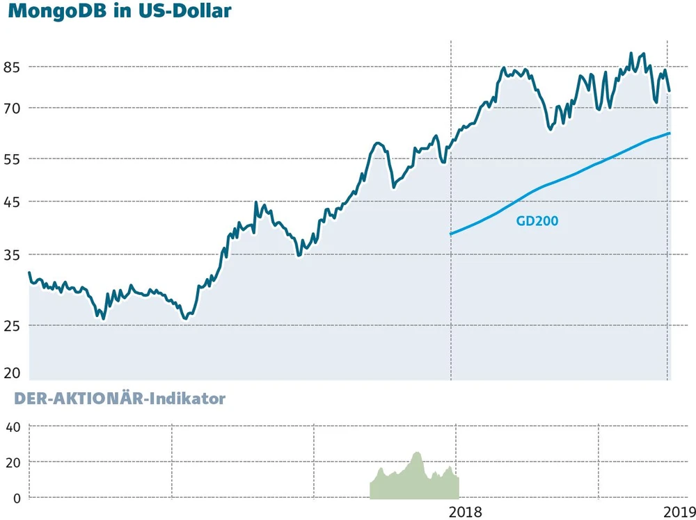 In den Ranglisten von TSI-USA findet sich die Aktie von MongoDB ganz oben wieder. Die Relative Stärke liegt mit 98,3 nur knapp hinter dem Top-Wert von Amarni Corporation. Zuletzt konnte MongoDB Weihnachten und Neujahr wieder deutlich zulegen. Ein positives Analystenrating von Sangit Singh von Morgan Stanley gab der Aktie Rückenwind. Er bekräftigte sein Equal-Weight-Ranking, hob aber das Kursziel von 72 auf 79 Dollar an. Zum aktuellen Kursniveau entspricht dies einem Potenzial von rund vier Prozent. Dies vermag zwar nicht viel zu sein. In einem sehr volatilen Markt, wie wir ihn aktuell sehen, ist dies aber ein Zeichen für das Vertrauen in die Stabilität der Aktie.