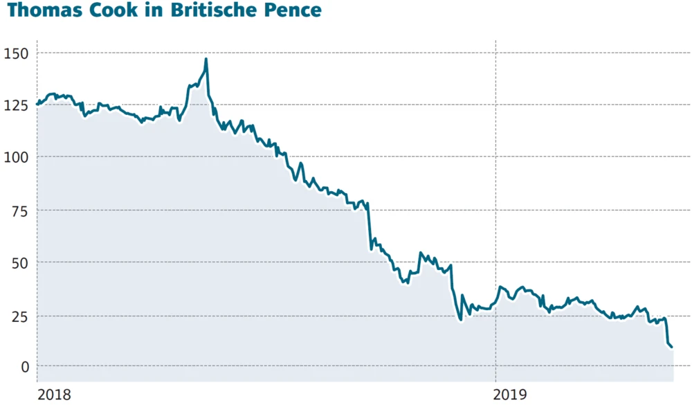 …und hört auf den Namen Thomas Cook. Der britische Rivale taumelt weiter dem Abgrund entgegen. Immer mehr Marktteilnehmer befürchten die Insolvenz des Reisekonzerns und Mutter der Airline Condor. Die Citigroup hat bereits das Kursziel von 0 Pence ausgegeben.