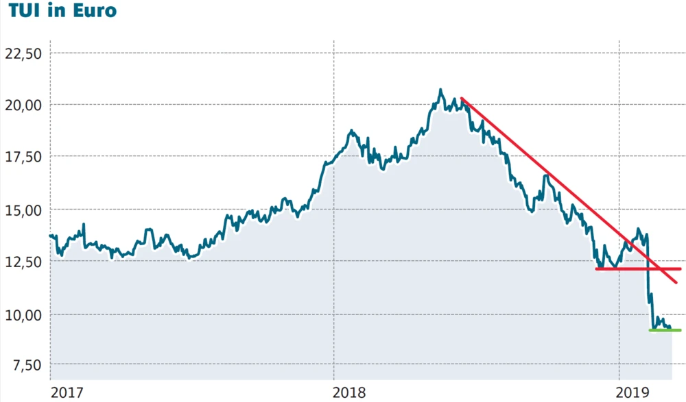 Die Tochter TUI fly entwickelt sich robust. Auch für die Muttergesellschaft sind die mittel- bis langfristigen Aussichten gut. Aber leider überwiegen kurzfristig eben einfach die Sorgen der Anleger vor einer nachhaltigen Änderung im Reiseverhalten der Europäer sowie vor einem harten Brexit. Und da das Chartbild weiterhin trüb bleibt, sollten Anleger nach wie vor an der Seitenlinie verharren.