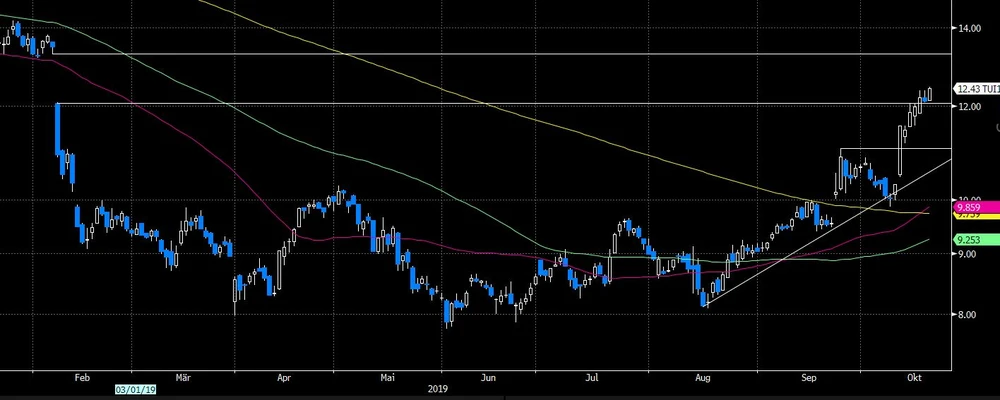Im vorbörslichen Handel zeigte sich die TUI-Aktie bereits leicht schwächer. Allerdings wäre eine Korrekturbewegung nach der beeindruckenden Rallye der vorangegangenen Wochen kein Grund zur Sorge. Es wäre rein charttechnisch betrachtet vielmehr sogar absolut gesund. Solange der seit August intakte Aufwärtstrend dabei nicht gerissen wird, bleibt das Chartbild auch im Falle einer Konsolidierung bullish.