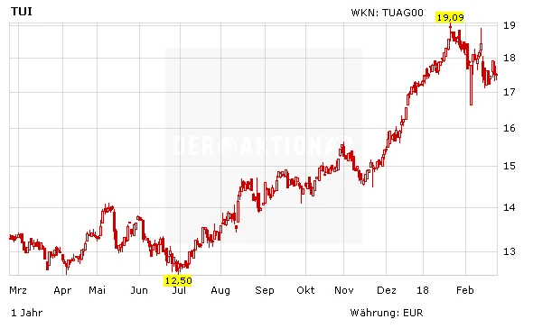 Die Aussichten für TUI sind sehr gut, die Bilanz überaus solide und die Bewertung ist mit einem 2019er-KGV von 13 moderat. Der Kurs steht kurz vor einem weiteren Kaufsignal. Die Chancen auf steigende Kurse stehen daher gut. Mutige Anleger können auf den Turbo-Bull der Commerzbank (WKN CE5543; Hebel 2,8; Knock-out 11,50 Euro) setzen.