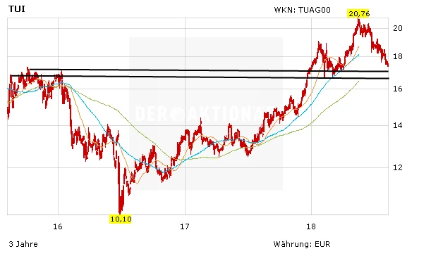 Die TUI-Aktie hat in den letzten Wochen stark korrigiert. Von knapp 21 Euro ging es bis auf 17,50 Euro abwärts.