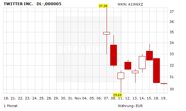 Die Twitter-Aktie ist nach wie vor extrem hoch bewertet. Erst bei Kursen unter 38 Dollar (28,40 Euro) können interessierte Anleger über einen gestaffelten Einstieg nachdenken.