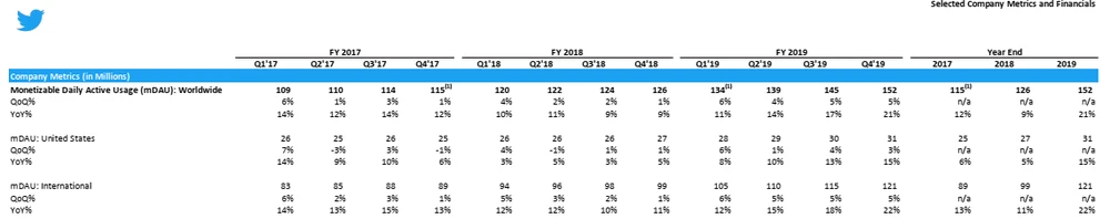 Insgesamt erzielte Twitter einen Gewinn je Aktie von 0,25 Dollar, Analysten rechneten mit 0,29 Dollar. Der Umsatz kletterte auf 1,01 Milliarden Dollar, erwartet wurde nur ein Umsatz von 997 Millionen Dollar.