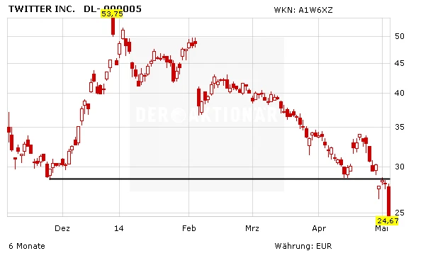 Viele Anleger waren schon zuvor von den schwachen Q1-Zahlen enttäuscht und haben nun die Chance ergriffen, ihre Twitter-Aktien auf den Markt zu werfen. Seit der Erstnotierung im November 2013 hat die Aktie von Twitter eine Achterbahnfahrt hingelegt. Allein im Dezember 2013 stieg die Aktie um rund 80 Prozent. Nur, um in den Monaten danach wieder auf das Ausgangsniveau der Rallye zurück zu fallen.