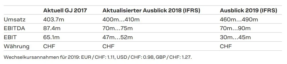 Der Ausblick 2018 und 2019 ist in der folgenden Tabelle dargestellt: