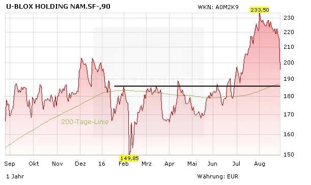 Durch das magere erste Halbjahr korrigierte der Chipspezialist seine Umsatzprognose von 395 bis 405 Millionen auf 375 bis 385 Millionen Schweizer Franken nach unten. Mittel- und langfristige Schätzungen bleiben dagegen bestehen. U-Blox ist mit seinen Produkten im aussichtsreichen Chip-Markt gut positioniert und erhofft sich ein besseres zweites Halbjahr.