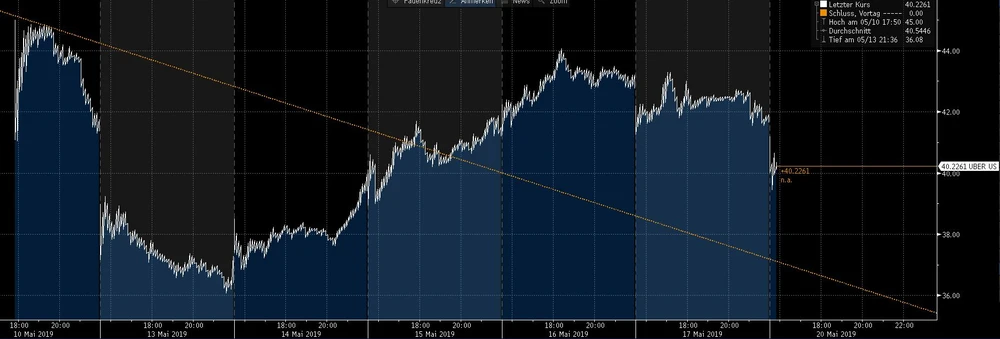Tatsächlich kostete ein Uber-Anteil beim Börsengang dann 45 Dollar. Am Ende des ersten Handelstags lag der Preis nur noch bei 41,57 Dollar.