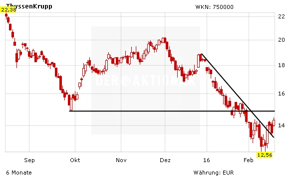 Zwar hat der Titel den Abwärtstrend geknackt und sich vom 4-Jahres-Tief bei 12,56 Euro erholt, doch im Bereich von 14,94 Euro wartet schon der nächste Widerstand auf den Titel. Auch die operativen Probleme des Unternehmens lassen sich durch Rieks Analystenstimme nicht aus dem Weg räumen. Anleger bleiben daher weiter an der Seitenlinie.