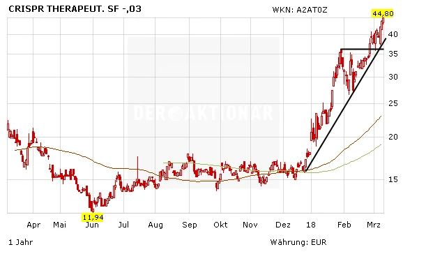 Die sogenannten Gen-Scheren gelten als das Universalwerkzeug für Therapien der nächsten Generation. Egal ob Krebs oder genetisch bedingte Erkrankungen: Dank der präzisen Anwendung dieser Technologie können Stellen im menschlichen Erbgut zielgenau und fehlerfrei verändert oder ersetzt werden. DER AKTIONÄR hatte in der Ausgabe 18/2017 mit CRISPR Therapeutics einen Pionier in diesem Forschungsbereich präsentiert. Die Performance beträgt seit der Empfehlung knapp 200 Prozent.