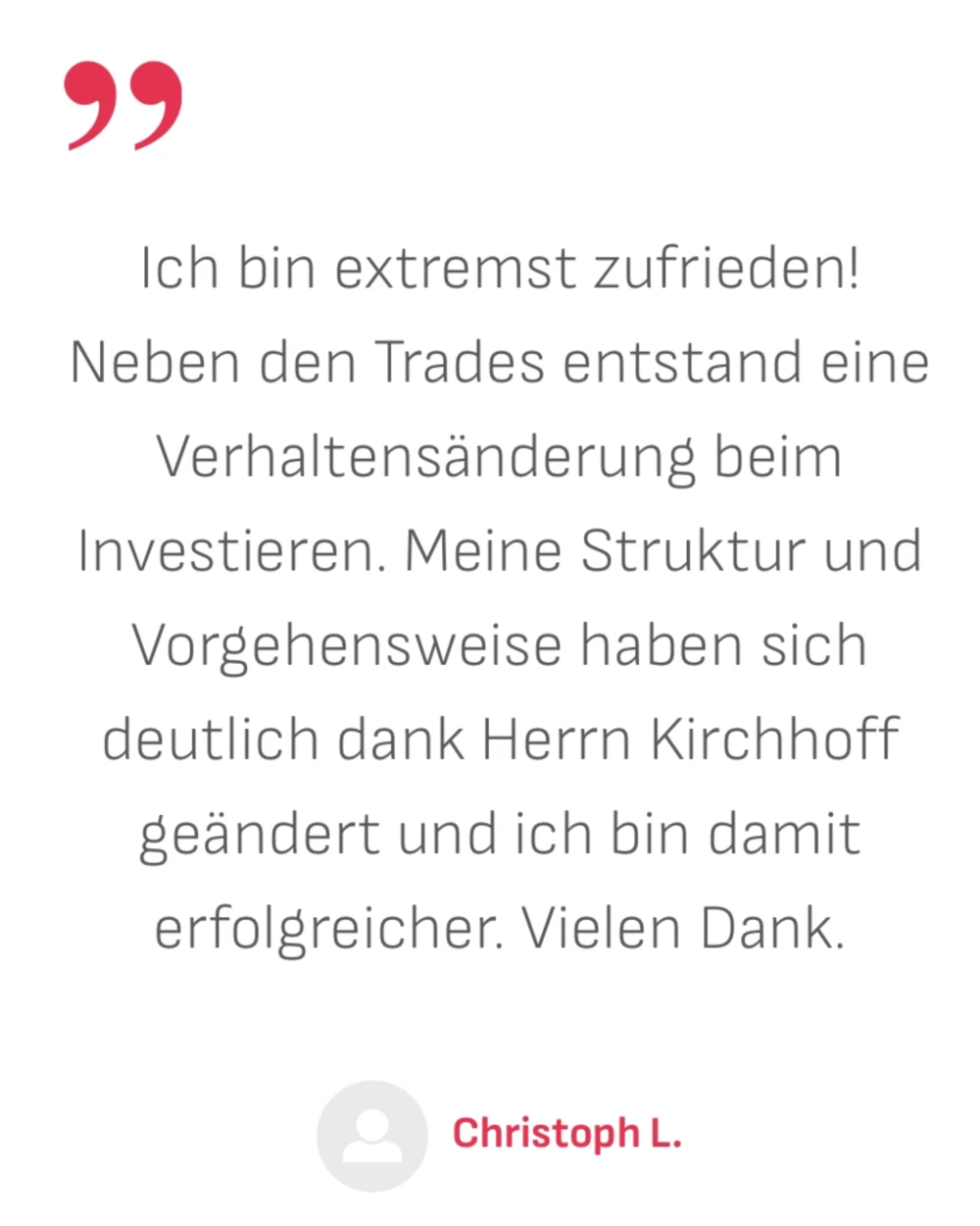 Frühzeitig in vielversprechende Werte investieren, also vor die Welle kommen, bevor der Mainstream auf den Zug aufspringt und die größten Renditechancen dahin sind – das ist das Credo von Golo T. Kirchhoff und seinem Börsendienst Kirchhoff-System. Und es funktioniert überaus erfolgreich – eine Gewinnquote von 90 Prozent bei 19 abgeschlossenen Trades ist schlichtweg beeindruckend und begeistert Anleger der aktuellen Runde auf ganzer Linie: