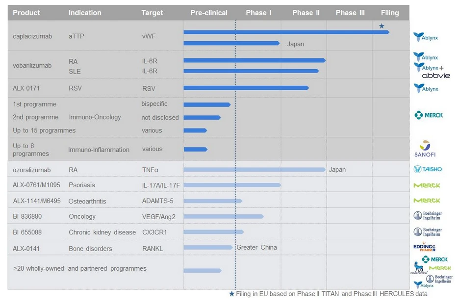 Im letzten Jahr hat Ablynx sich an der US-Börse listen lassen, um sich mehr Aufmerksamkeit unter den US-Investoren zu sichern. Die Pipeline der Belgier kann sich sehen lassen: