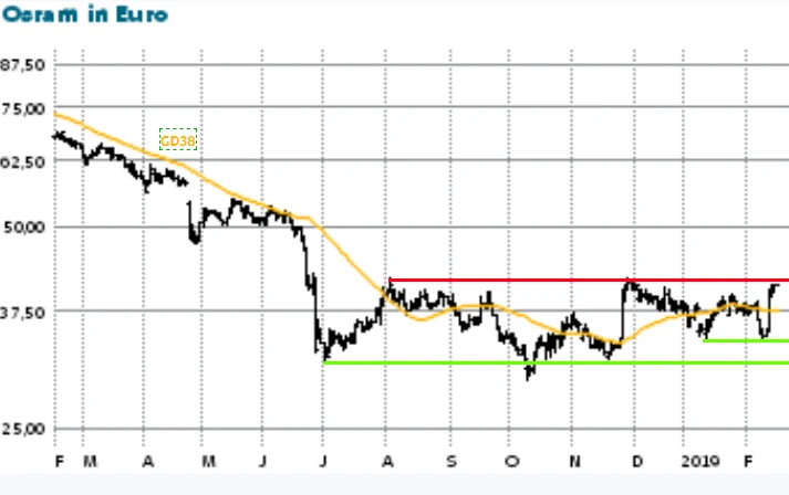 Derzeit wird Osram mit 4,25 Milliarden Euro bewertet. Legt man die übliche Übernahmeprämie von 20 Prozent zugrunde, dann müsste ein Übernahmeangebot klar über 40 Euro liegen. Unterstellt man der Gesellschaft einen erfolgreichen Abschluss der laufenden Transformationsphase und eine Belebung der Umsätze samt einer nachhaltigen Steigerung der Margen, dann könnte sogar eine fünf vor dem Komma stehen - also 50 Euro plus X geboten werden. Erst dann dürften vermutlich auch die Großaktionäre bereits sein, sich von ihren Anteilen zu verabschieden.