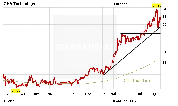 Wyser-Pratte betont, dass es zwar einen unabhängigen Direktor gebe. Dieser sei allerdings mit der Familie eng verbunden. Entsprechend zweifelt der US-Investor an der Unabhängigkeit der Führungsriege. Anleger nehmen den Vorstoß positiv auf. Das Papier von OHB gewinnt rund vier Prozent. Denn OHB hat sich bereits zu dem offenen Brief in einer kurzen AdHoc-Mitteilung geäußert: Dieser Brief wurde am Morgen des 17. August 2017 per Pressemitteilung von WPMC öffentlich gemacht. Die darin formulierten Fragen wird die OHB SE genau prüfen und beantworten. Diese Antwort wird ebenfalls öffentlich gemacht.“, so der Satellitenbauer.