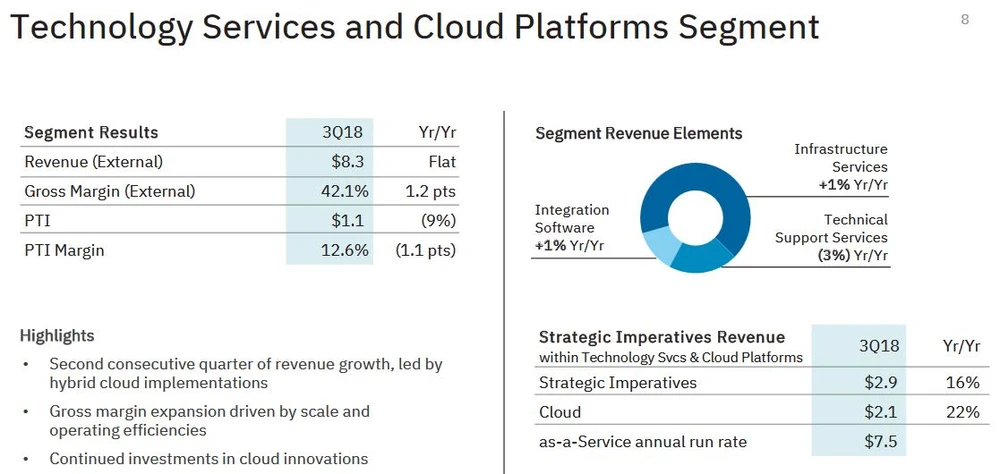 Insbesondere die sogenannten „strategischen Imperative“, wie IBM die im Zukunftsgeschäft wie beispielsweise der Cloud erwirtschafteten Umsätze nennt, sollten den Konzern wieder auf Wachstumskurs bringen. Das langfristige Ziel – rund 50 Prozent des Gesamtumsatzes aus den strategischen Imperativen – erreichte IBM im vergangenen Quartal. Im aktuellen Berichtszeitraum lagen die Cloud-Erlöse mit 9,3 Milliarden Dollar knapp unter diesem Ziel.