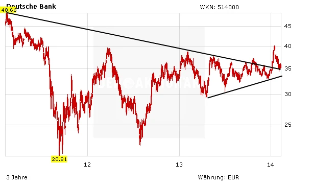Auch DER AKTIONÄR bleibt positiv für die Aktie der Deutschen Bank gestimmt. Sowohl aus charttechnischer als auch aus fundamentaler Sicht bleibt das Papier des deutschen Marktführers ein Kauf. Der Stopp sollte bei 30,50 Euro belassen werden.