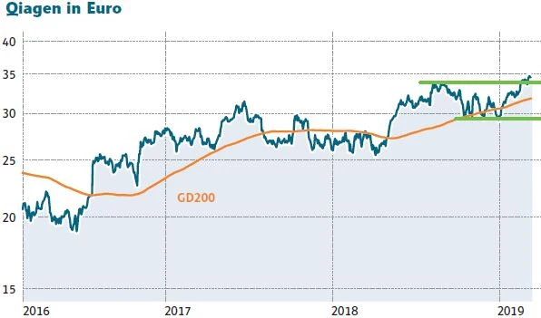 Leser, die der Empfehlung des AKTIONÄR im Juni 2016 gefolgt sind und sich ein paar Stücke von Qiagen zu einem Kurs von 18,51 Euro ins Depot gelegt haben, können sich nun über einen Kursgewinn von rund 86 Prozent freuen. DER AKTIONÄR ist zuversichtlich, dass dies noch längst nicht das Ende der Erfolgsstory von Qiagen ist und empfiehlt die Gewinne laufen zu lassen. Ein Stopp bei 26 Euro sichert nach unten ab.