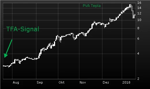 Genau solche „langweiligen Aktien“ – waren die größten Gewinner des letzten Jahres. Die AKTIONÄR-Turnaround-Formel hat im Juli etwa den Maschinenbauer PVA Tepla ins Depot gekauft. Das Ergebnis: plus 400 Prozent in der Spitze. Um das Risiko zu kontrollieren, hat die Turnaround-Formel dabei zwischenzeitlich Teilgewinne realisiert.