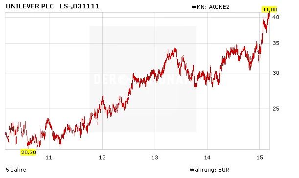 Daher kann damit gerechnet werden, dass sich Unilever-Aktionäre über weitere Dividendenerhöhungen freuen dürfen. Zumal Unilever so etwas wie ein europäischer Dividenden-Aristokrat ist: Seit 40 Jahren wurde die Dividende stetig angehoben. Aktuell liegt die Rendite bei 3,2 Prozent.