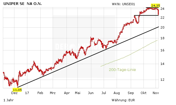 Die Uniper-Aktie ist am Dienstagmorgen zunächst deutlich unter Druck geraten. Nach dem Übernahmeangebot könnte es zu einer andauernden Seitwärtsbewegung kommen. Anleger sollten in der Branche auf die Mutter E.on setzen. Der DAX-Versorger hat seine Bilanz aufpoliert und ist gut gerüstet für die neue Energiewelt. Doch auch Fortum bleibt eine gute Wahl. Die Finnen glänzen mit einem starken Portfolio, einer hohen Dividendenrendite von sechs Prozent und einem Top-Chartbild.